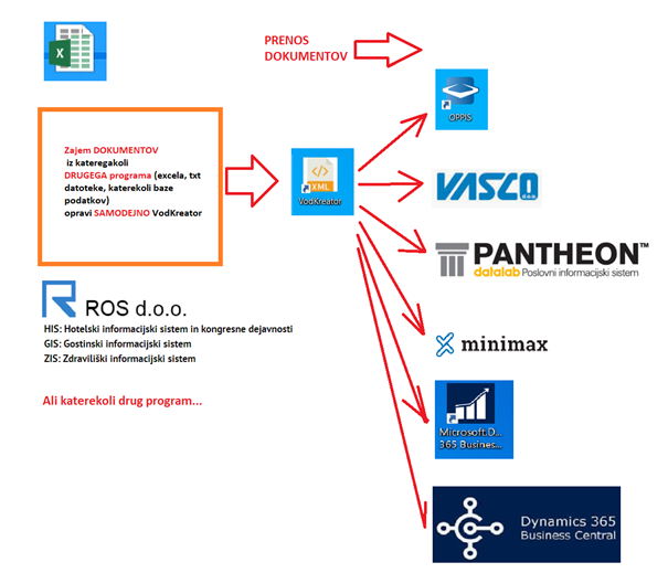 je HITER in ENOSTAVEN zajem in prenos dokumentov iz kateregakoli programa v različne računovodske programe (FRS programme) : Vasco, Pantheon, OpPIS, Minimax, Navision, Business Central 365