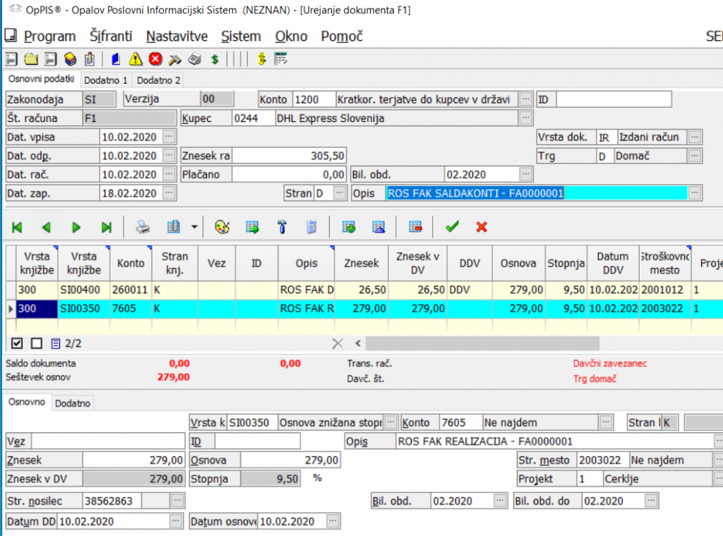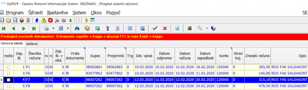Primer prenosa dokumentov iz programa ROS (hotelski in gastro program) v računovodski program OpPIS:
