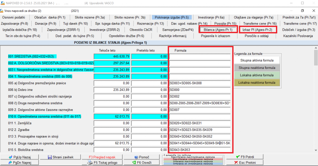 V modulu Napoved, vam izvedemo nastavitve Bilance (Ajpes – BC) in Izkaz poslovneg izida (Ajpes – IPI), glede na vaš kontni plan, za različne tipe družb: