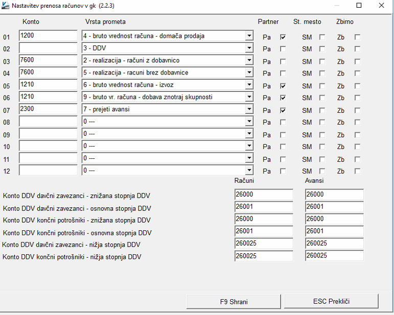 Ustrezno glede na vaš kontni plan nastavimo prenos računov v Glavno knjigo. Prenos testiramo in predamo v produkcijo.